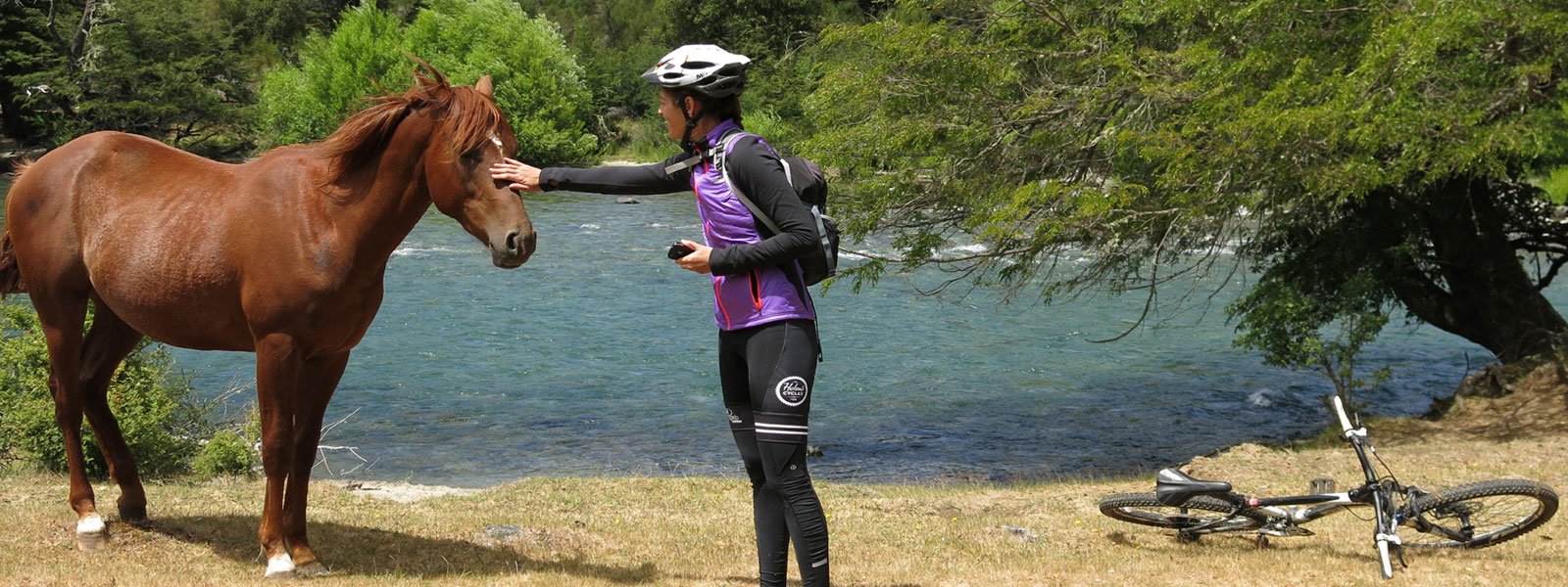 Biking near Volcán Villarica with the canadian team Classic Bariloche paradise Crossing a little bridge in Manso River During a trip with the nice canadian team Katie petting a horse during a little ride in the chilean border Seema and Dan during our first trip in 2006